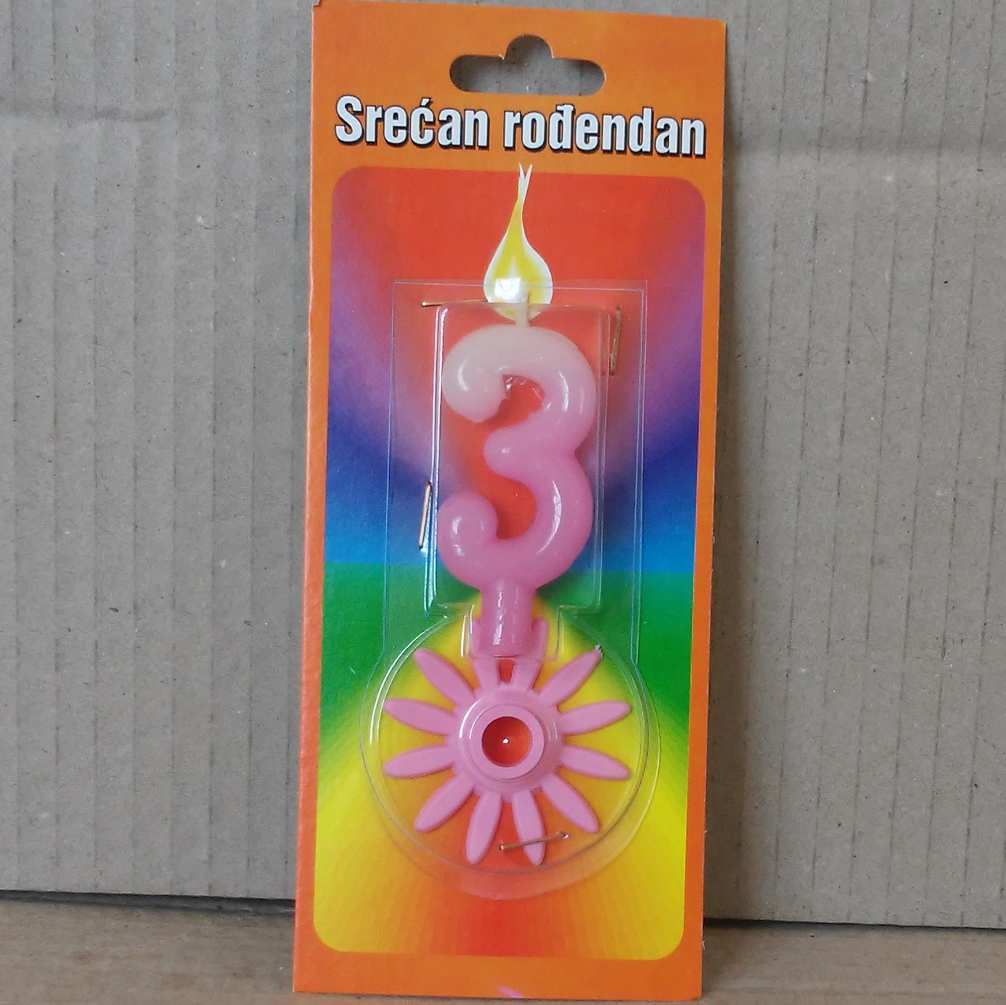 SVEĆICA ROĐENDANSKA 3 ROZE