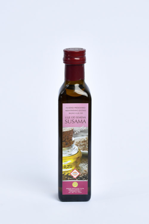 Hladno presovano susamovo ulje bagata je nezasićenim masnim kiselinama, omega 6, vitamin E, A, B1, B6, mineralima, mangam, bakar, kalcijum. Zbog bogastva hranjivih materija primenjuje se u prehrambene, lekovite i sve češće u kozmetičke svrhe. Zahvljujući hranljivim vrednostima koje sadrži hladno presovano susamovo ulje i njegovom ukusu sve vise se obogaćuju jela svetskih kuhinja. Unosi se isključivo sirovo u organizam. Čuvati na tamnom hladnom mestu. Vrhunskog je kvaliteta jer se dobija bez ikakve termičke obrade.
