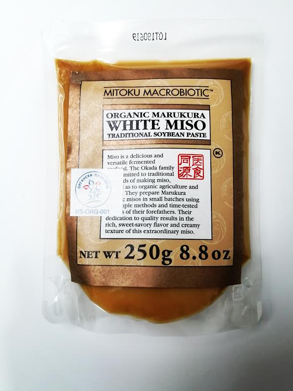 Miso je fermentisana pasta sojinih zrna, morske soli i gljivice kođi uz dodatak ječma ili pirinča. Ona se na Istoku proizvodi i koristi već 1300 godina. To je jedan od najzdravijih, najukusnijih i najprimenljivijih dodataka hrani. Marukura slatki beli miso je vrhunski proizvod iz biološkog uzgoja i najpopularniji je miso u Japanu. Zanatlijski ga proizvodi porodica Okada. Odlikuje ga lagan, slatkast, osvežavajuć ukus. Ovaj miso je naročito pogodan za korišćenje u sosovima, umacima, prelivima za salate.