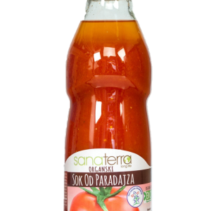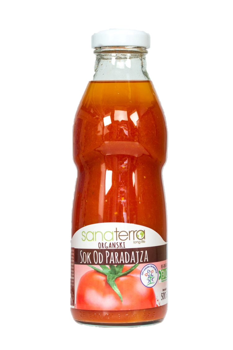 Sanaterra organski sok od paradajza napravljen je od organskog Lova paradajza, jedne od onajboljih sorti žbunastog stabla, bez dodate soli, šećera, začina i konzervansa. Paradajz je bogat vitaminima (C, B, K) i mineralnim solima (kalijuma, natrijuma, magnezijuma, kalcijuma i gvožđa) i svakako spada u zdravu hranu.